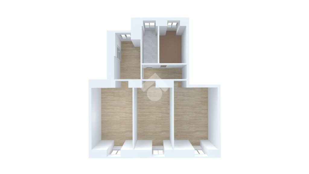 L’appartamento presenta una distribuzione interna funzionale ed è composto da tre camere, cucina e servizio. La doppia esposizione nord/sud garantisce un buon ricambio d’aria e, a differenza delle classiche soluzioni seminterrate con finestre a bocca di lupo, l’immobile dispone di finestre di dimensioni regolari, che rendono gli ambienti più fruibili e condizioni interne sono abitabili.