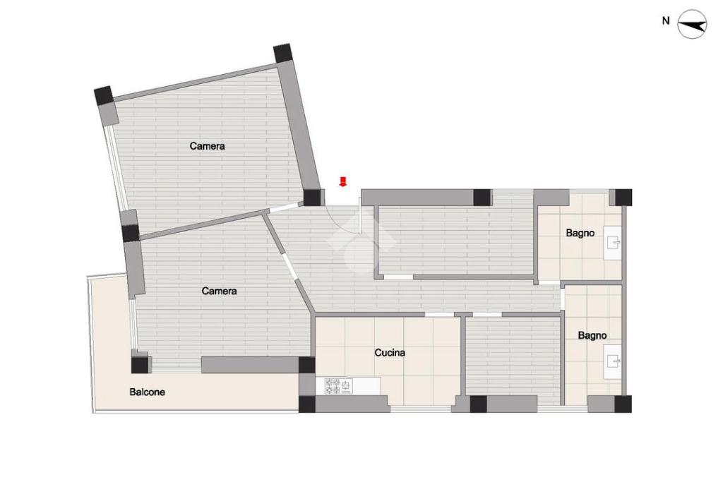 Con una metratura catastale di 92 mq, l’appartamento si presenta attualmente organizzato per finalità locative, essendo affittato a studentesse con contratto in essere fino a luglio 2026. La distribuzione interna è stata infatti ottimizzata per massimizzare la resa: quattro ambienti distinti, cucina e doppi servizi, una configurazione che garantisce un’elevata redditività e lo rende particolarmente interessante anche come investimento.